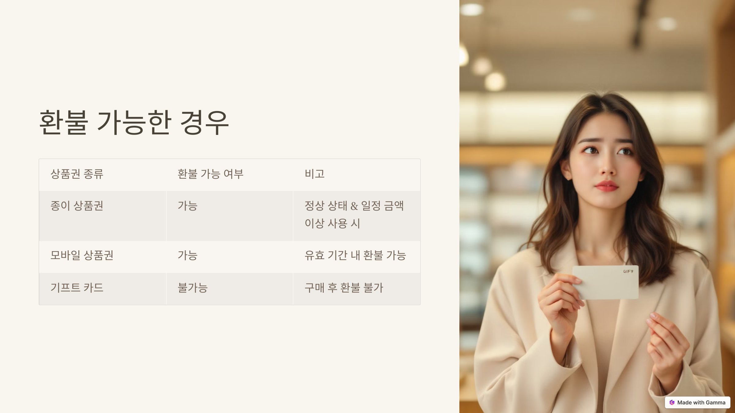| 상품권 종류 | 환불 가능 여부 | 비고 |
