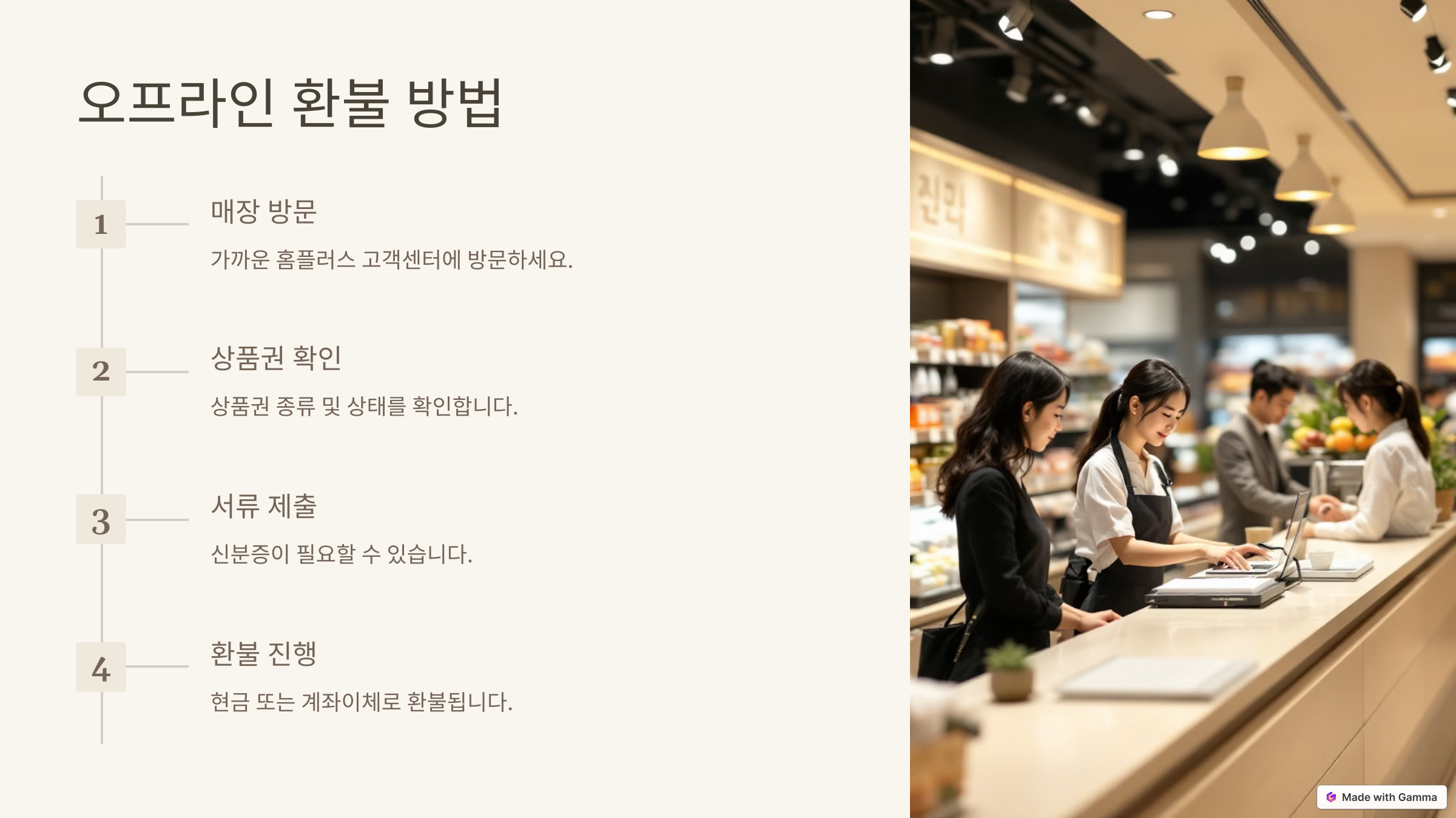 이제 오프라인에서 홈플러스 상품권을 환불하는 방법을 알아볼까요? 🏪